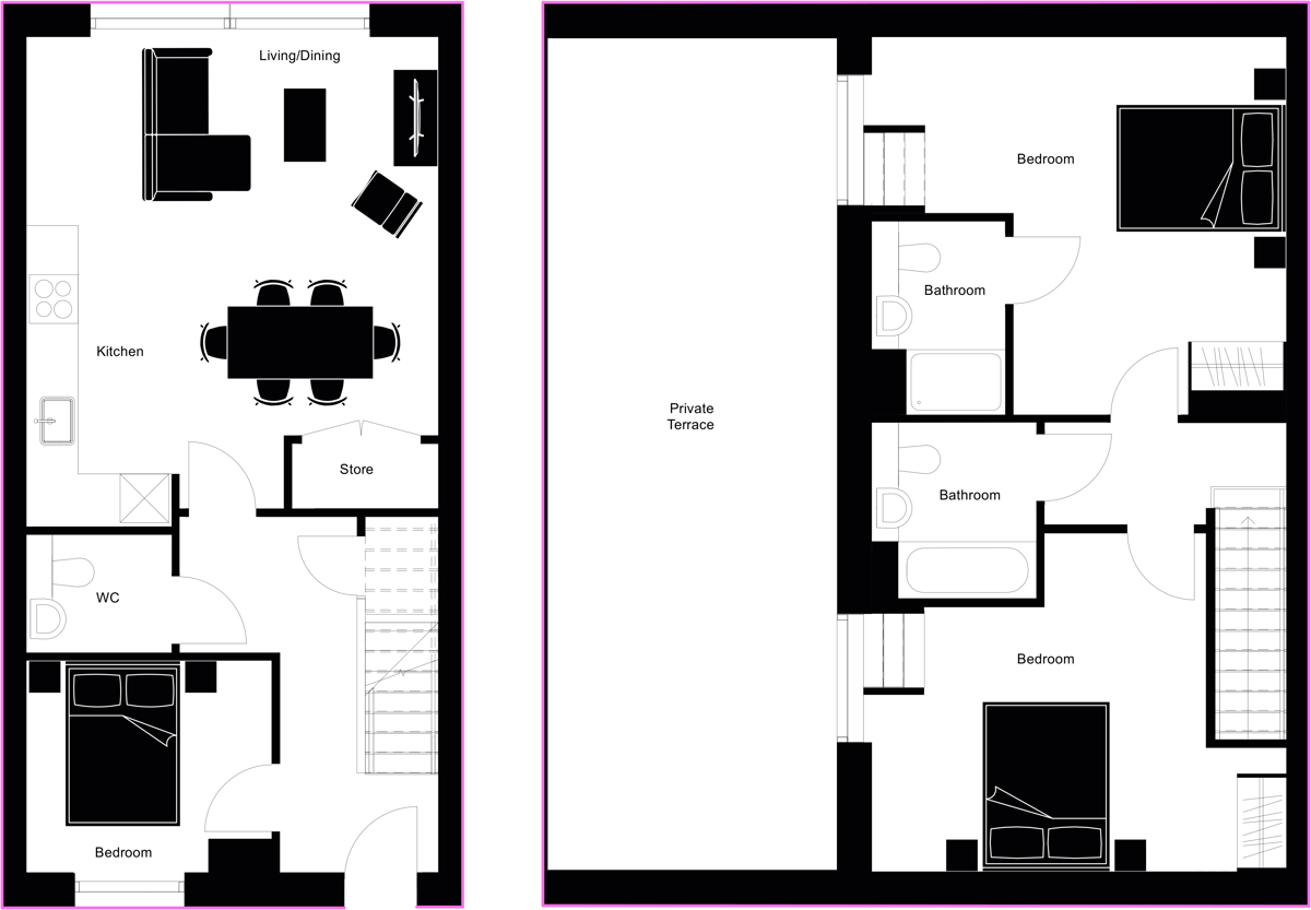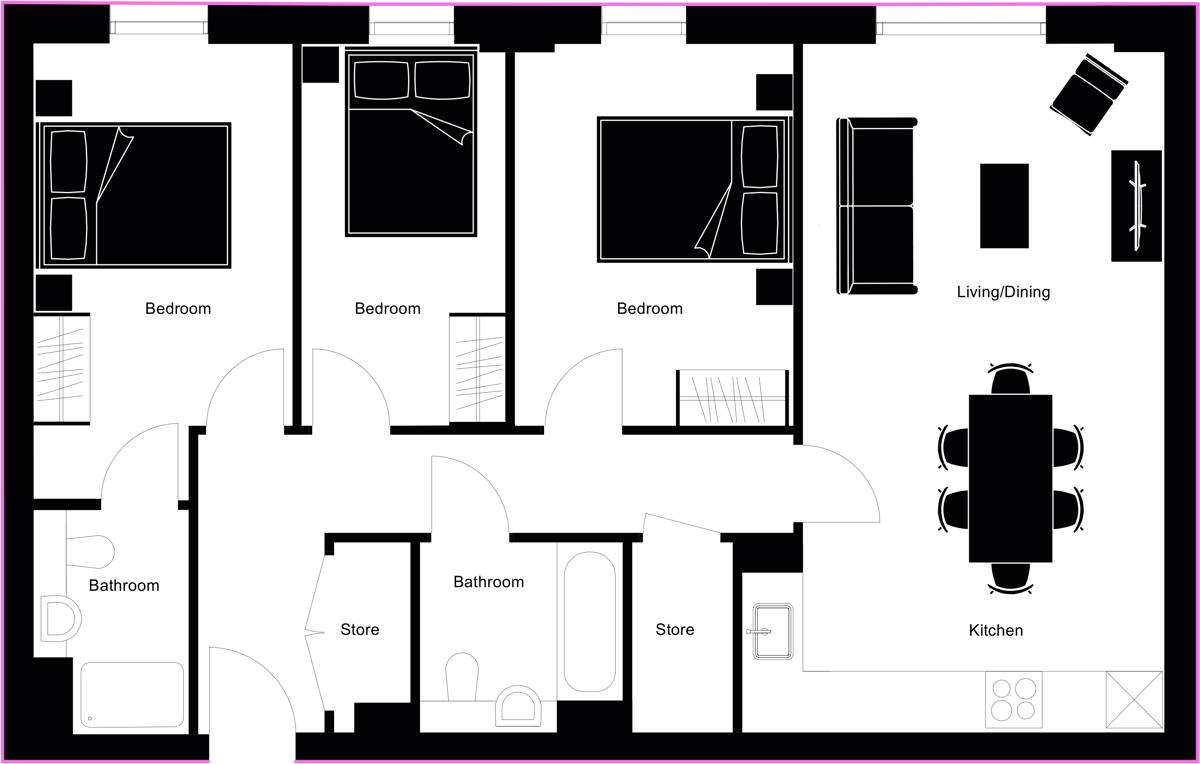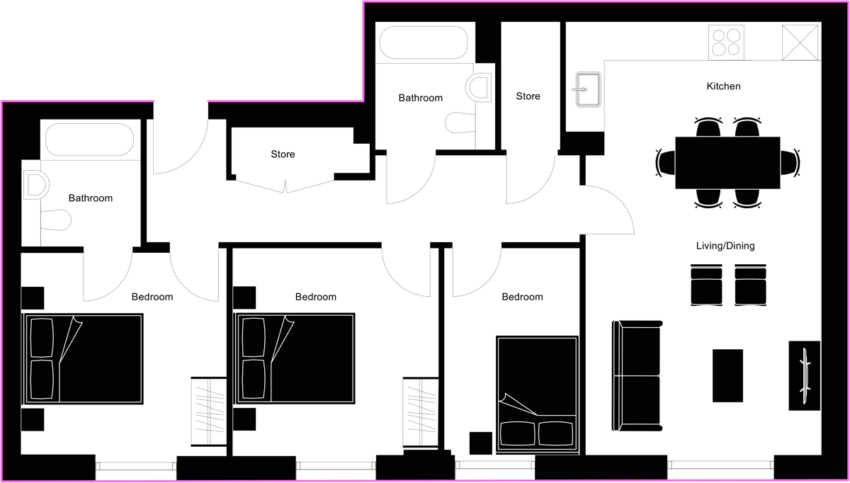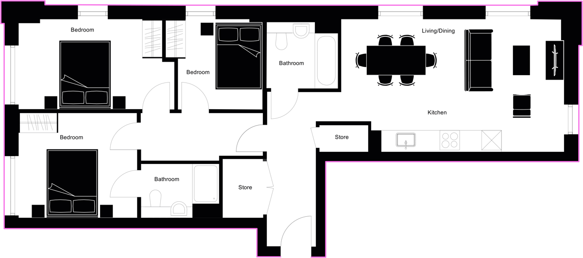 Perfect for families or sharers our three-bed apartments are thoughtfully planned and beautifully finished.